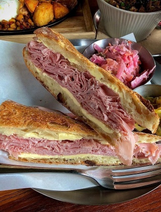 ‘소금집델리 망원’은 훈제 베이컨을 만들던 작은 작업실에서 시작하여 지금은 수제 가공육을 제조하는 전문점으로 자리 잡았습니다. 유명 매스컴에 방영되며 샤퀴테리에 대한 큰 관심과 대중화를 불러 일으킨 곳이기도 합니다. 대표 메뉴는 이즈니 버터를 듬뿍 바른 바게트 사이로 수제 잠봉을 푸짐하게 채워 넣은 ‘잠봉 뵈르’. 돼지 뒷다릿살을 소금과 설탕으로 3주간 숙성시켜 은은한 감칠맛이 살아있는 잠봉과 버터의 향긋함이 어우러지며 고급스러운 풍미를 즐길 수 있습니다. 바삭한 식감과 고소한 맛을 지닌 바게트에 잠봉 특유의 짭조름한 맛이 더해지며 적절한 훌륭한 밸런스를 이룹니다.