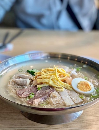 부산 해운대역에서 바로 보이는 '평양면옥'. 이북에서 건너온 주방장님이 직접 만드는 채소 육수를 사용하여 슴슴하고 담백한 냉면을 맛볼 수 있는 곳입니다. 냉면 그릇은 옥류관의 냉면을 연상케 합니다. 닭고기부터 소고기, 돼지고기가 모두 올라가는 고명에 채소의 채소의 단맛이 올라오는 국물과 툭툭 끊어지는 면의 삼합이 훌륭합니다.