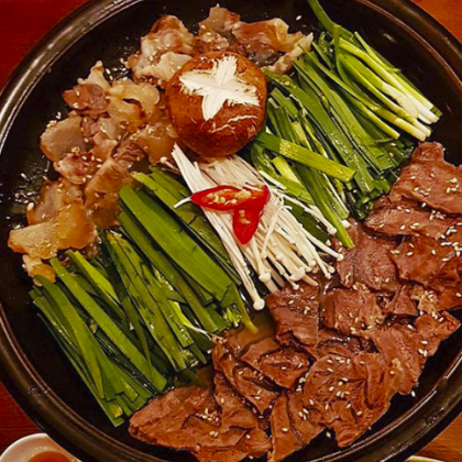 생고기는 일명 뭉티기라고 하는 소고기를 얇게 저며 썰어 놓은 음식입니다. 알찬 밑반찬과 함께 색깔부터 영롱한 생고기와 육회를 즐길 수 있습니다. 곁들여 먹는 탕국과 바지락탕도 맛있습니다.