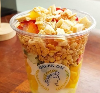 요거트 전문점 '그릭데이'. 건강과 신뢰를 기반으로 하는 수제 그릭 요거트 전문점이다. 생우유와 유산균만으로 인공첨가제 없이 3일에 걸쳐 제조하며, 수제 그래놀라와 신선한 생과일, 견과류와 함께 제공하는 것이 특징. 수십 가지의 다양한 조합의 토핑 메뉴가 있으며 싱글로 토핑을 선택해서 주문해도 된다. 홍대정문에서 정면방향으로 내려가는 길로 약 100m 내려오면 오른편 푸르지오 상가 1층에 위치해 있습니다.