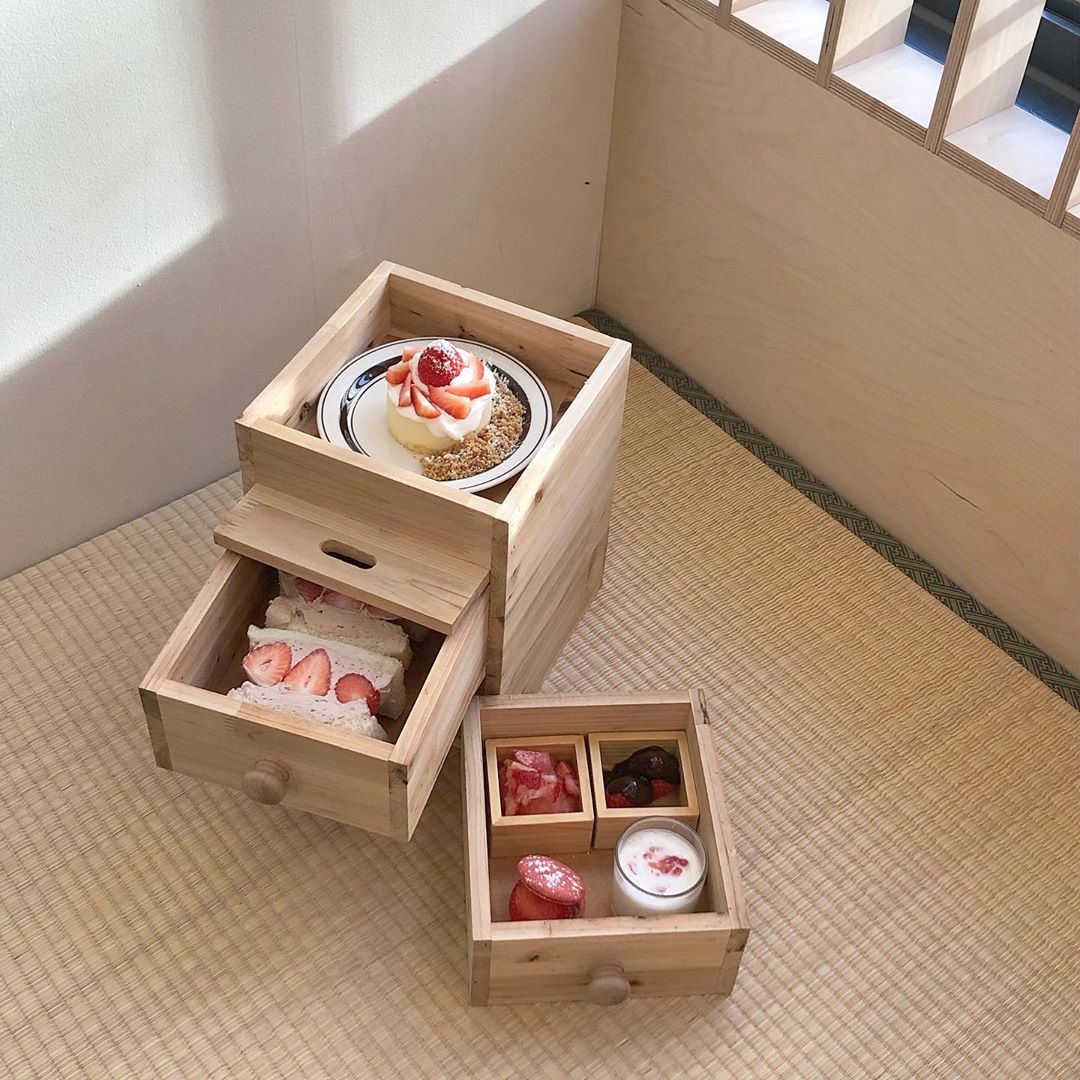 계절마다 다른 디저트 박스메뉴를 판매하는 것이 특징인 카페입니다. 내부는 다다미석과 커다란 원테이블을 쉐어하는 형식의 공간이 마련되어 있습니다. 차분하고 아늑한 분위기가 있으며 공간이 협소하여 웨이팅이 있을 수 있습니다.