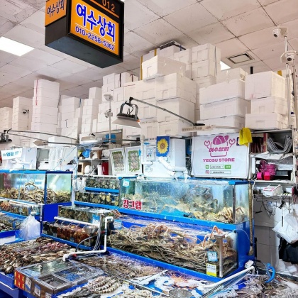 엄마와 딸이 함께 운영하는 여수상회입니다. 당일 노량진 수산시장 새벽 경매를 통해 들어오는 신선한 해산물만을 판매하며 갑각류(킹크랩 대게 랍스타 새우) 어패류(가리비 조개 전복) 등을 취급하는 곳입니다. 자세한 판매 품목과 시세 파악은 블로그 및 인스타로 확인 할 수 있으니 참고하면 좋습니다.