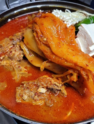 Q.이곳 감자탕과 김치 감자탕 국물 맛의 특징은 무엇인가요?A.김치 감자탕 국물은 묵은지의 깊은 맛이 진하게 배어 있으면서도 자극적이지 않고, 얼큰하고 칼칼하면서도 시원한 맛이 함께 느껴지는 것이 특징입니다.