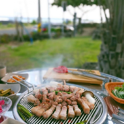 바다와 노을이 함께하는 야외 흑돼지