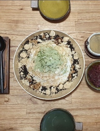 옹기찻집은 옹기 항아리와 도자기 인형들로 가득한 독특한 공간에서 여름한정 팥빙수를 즐길 수 있는 곳이다. 놋그릇과 유기그릇에 산처럼 소복하게 올린 우유빙수 위에 보리새싹 가루, 견과류, 떡, 과자 크런치, 수제 팥앙금, 에스프레소 커피가 더해져 식감과 맛이 풍부하다. 인절미를 함께 곁들이면 성인 여럿이 배부르게 나눠 먹을 수 있으며, 어르신들이 쌍화차와 대추차를 즐기며 오붓하게 머무는 분위기도 인상적이다.