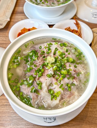 Q.나막집 광안민락점 돼지곰탕 국물 맛은 어떤 특징이 있나요?A.채수와 고기 육수를 함께 사용해 맑고 깔끔하면서도 깊은 맛을 내며, 잡내가 없고 감칠맛이 남달라 돼지국밥과는 다른 돼지곰탕의 새로운 경험을 제공합니다.