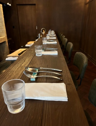 Q.매장 분위기와 좌석 구성은 어떤 편인가요?A.어두운 조명과 세련된 인테리어가 어우러진 작은 레스토랑으로, 전 좌석 바 테이블에 좌석 간격을 넓게 배치해 프라이빗한 분위기에서 조용히 식사하기 좋습니다.