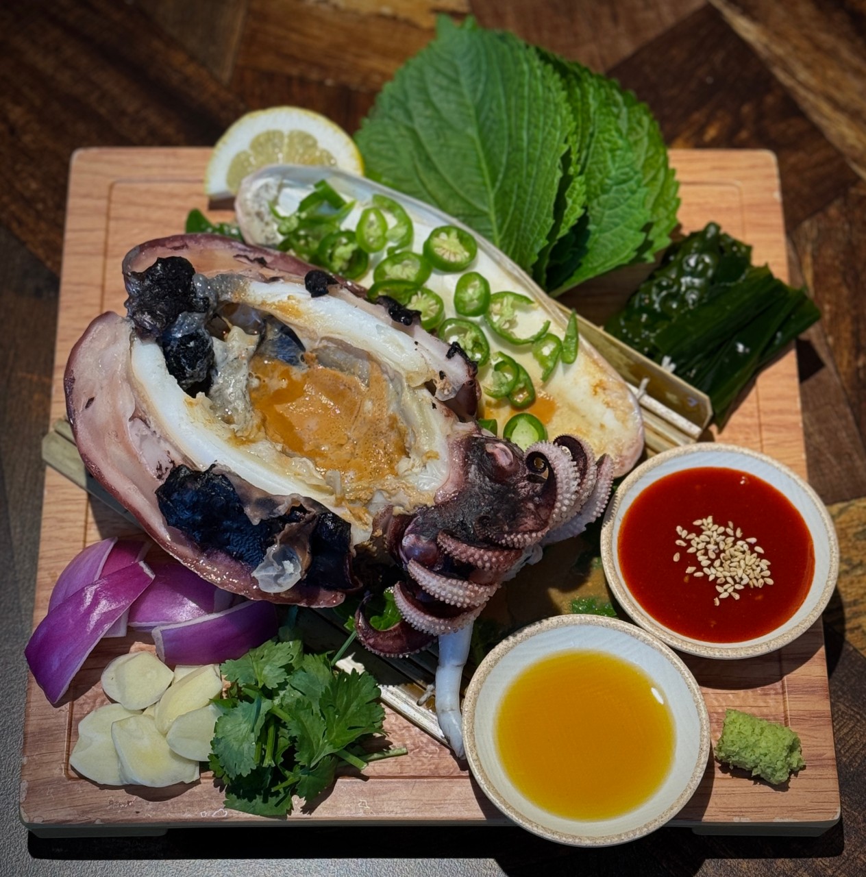 용산구 한남동의 세련된 골목에 위치한 ‘애주옥’. ‘사랑할 애(愛), 술 주(酒), 집 옥(屋)’이라는 상호처럼 술을 사랑하는 이들을 위해 고안된 감각적인 한식주점입니다. 이곳은 전통적인 주막의 개념을 현대적인 라운지 스타일로 풀어내어 한남동 미식가들 사이에서 독보적인 존재감을 드러내고 있습니다. 이곳은 완도 돌문어, 서해 갑오징어, 남해 황게 등 지역별 식재료를 활용한 특색있는 메뉴를 내놓습니다. 전국 팔도에서 모이는 산지직송 육해공 식재료들로 선보이는 요리들은 종류가 꽤나 많기 때문에 다양하게 맛보고 싶다면 여럿이 방문하는 것을 추천합니다. 기본으로 8첩 반찬이 제공되기 때문에 인심도 넉넉한 편입니다.