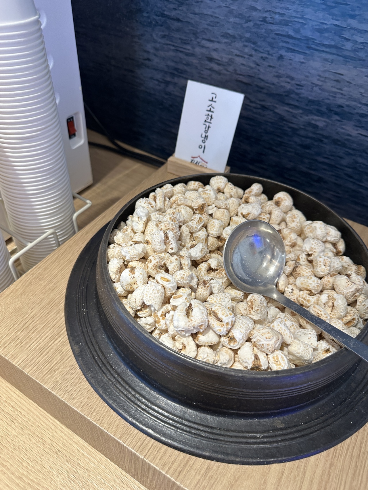 Q. 이곳의 대표적인 식사 구성은 어떻게 되나요?A.화덕으로 구운 고등어·갈치·삼치·임연수 등의 생선구이정식이나 제육정식에 잡곡밥이 곁들여지고, 20가지 정성 가득 반찬을 셀프바에서 무한으로 가져다 먹을 수 있습니다.
