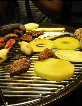 Q.몽키그릴에서는 어떤 방식으로 고기를 즐길 수 있나요?A.숯을 넣은 화로에 목살과 항정살, 소시지와 각종 채소를 올려 직접 구워 먹는 방식으로, 캠핑분위기 고깃집 특유의 감성을 느낄 수 있습니다.
