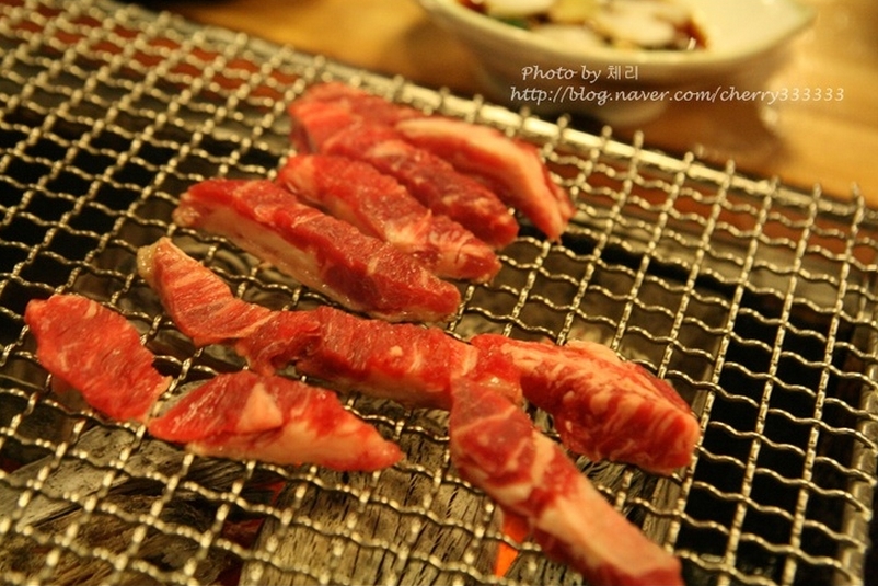 벽돌 무늬로 꾸미고 천정에 배관을 드러내 인더스트리얼 스타일로 꾸민 고기구이 전문점입니다. 갈빗살, 토시살, 주물럭 등의 소고기 메뉴와 삼겹살, 양념구이 등의 돼지고기 메뉴가 고루 준비되어 있는데요, 고기를 주문하면 무채무침, 소고기무국 등의 반찬이 곁들여지지요.