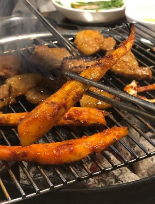 화로에 구워 먹는 고추장 삼겹살