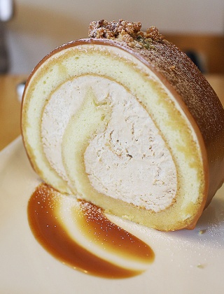 케이크, 스콘, 쇼콜라, 타르트 등의 베이커리와 유기농 허브티, 커피가 준비되어 있는데요. 다섯가지 맛의 생카라멜과 원심 분리기로 추출한 100% 유지방 생크림에 4가지맛의 카라멜을 넣어만든 카라멜 롤케이크가 인기 메뉴입니다