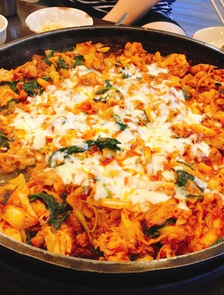 Q. 양과 구성은 어떤지, 배부르게 먹을 수 있을까요?A.닭갈비에 양배추를 비롯한 재료가 많이 들어가고 우동사리와 볶음밥까지 더하면 판이 꽉 찰 정도로 양이 푸짐해 남기는 손님도 있을 정도입니다.