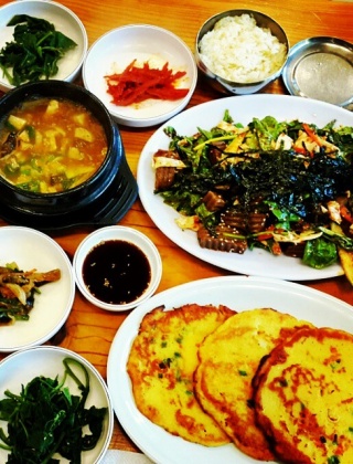 Q. 속리산큰집에서 특히 인기 있었던 메뉴는 무엇인가요?A.해물파전과 산채비빔밥, 올갱이해장국이 자주 언급되며, 해물파전은 철판에서 노릇하게 부쳐져 바삭한 식감과 재료가 풍부한 점이 인상적이었다고 설명된다.