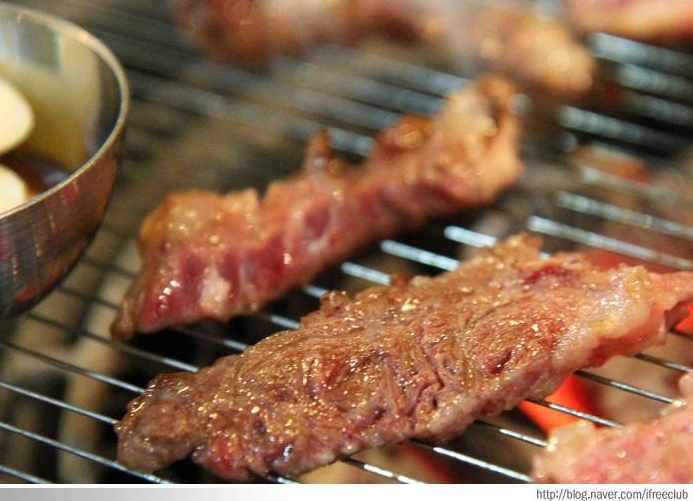 연탄불에 굽는 부드러운 한우 갈비살