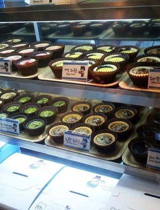호두파이와 미니타르트를 전문으로 만드는 공장으로 직접 가서 먹을 수 있고, 테이크아웃도 할 수 있으며 선물용으로도 좋습니다. 곰돌이 모양의 호두파이 위에는 곰돌이 표정이 데코되어 있어 더욱 귀엽고 사랑스러운 느낌을 줍니다. 이 외에도 다양한 맛과 예쁜 색감의 타르트도 준비되어 있습니다.