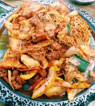 통돼지두루치기 전문점. 생생정보에 방영된 곳. 메뉴로는 통돼지 두루치기, 오겹살, 항정살, 가브리살, 냉면, 통돼지 김치찌개, 부대찌개 등이 있다. 통돼지두루치기는 손두부, 라면, 햄, 떡등 라면사리 추가가 가능하며 주문시 주방에서 모두 구워져 나오기 때문에 바로 먹을 수 있다.마지막에는 볶음밥을 볶아 먹을수 있다. 김치찌개나 부대찌개도 인기메뉴. 매장 내부는 좌식