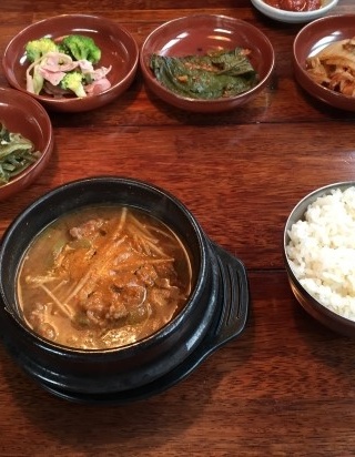 Q. 당인식당의 음식 구성은 어떤 특징이 있나요?A.시골 오일장에서 가져온 재료로 한상차림을 내며, 집밥 느낌의 한끼식사에 여러 가지 반찬이 나오고 반찬 리필도 가능하며, 고등어구이나 삼겹살 구이, 닭갈비 같은 메인반찬이 추가로 제공되기도 한다.