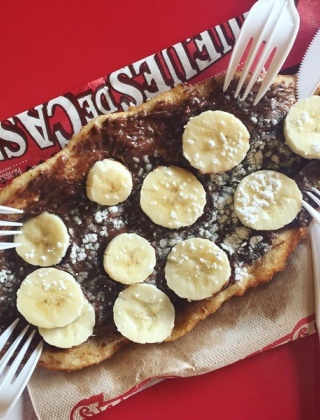 초콜렛, 바나나 등을 올린 패스트리