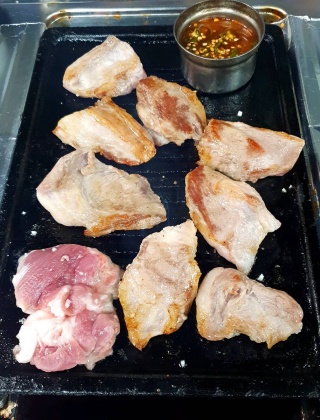 ‘연정식당’은 제주도 여행객들의 맛집 필수 코스로 소문난 고깃집입니다. 고기를 주문하면 파절이, 깻잎지, 묵은지, 파김치, 나물 무침 등 밑반찬이 정갈하게 차려집니다. 대표 메뉴는 돼지 한 마리에서 약 200g 정도 소량만 나오는 ‘가브리살’입니다. 두툼하게 썰어 소금을 뿌려 나오는 가브리살은 등 지방이 분포되어 있어 쫄깃한 육질이 일품입니다. 처음엔 고기 본연의 풍미를 느낀 뒤 김치, 멜젓 등 다양한 반찬 및 소스를 곁들여 먹는 걸 추천합니다. 구수한 국물에 두부를 숭덩숭덩 썰어 넣은 ‘청국장’도 식사 메뉴로 즐겨 찾습니다. 밥에 청국장을 듬뿍 얹은 뒤 멜젓과 함께 비벼 먹는 조합이 인기를 끌고 있습니다.
