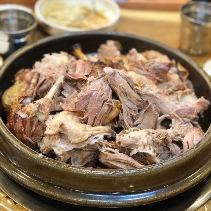 Q. 하루방유황오리에서 특히 인기 있는 메뉴는 무엇인가요?A.이곳에서는 오리 진흙구이가 대표 메뉴로, 한 마리에 3~4명이 함께 먹을 수 있을 정도로 양이 충분하고 속에 찰밥과 견과류, 고구마, 인삼 등이 가득 들어간 것이 특징입니다.