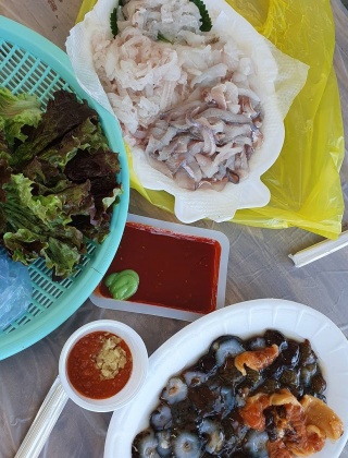 Q. 이곳 회와 해산물의 식감과 맛은 어떤 편인가요?A.회와 해산물은 쫄깃한 식감과 쫀득쫀득하고 탱탱한 느낌이 강조되며, 바다향이 가득하고 깔끔쫄깃한 맛으로 표현되어 전반적으로 만족스러운 맛으로 묘사된다.