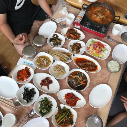 Q.강화식당 보리굴비정식 상차림은 어떤 구성이 인상적이었나요?A.보리굴비정식은 보리굴비를 중심으로 조기매운탕, 간장게장, 양념게장, 새우장, 육전, 호박전 등 반찬이 4인 테이블을 가득 채울 정도로 다양하고 푸짐하게 나오는 점이 특징입니다.