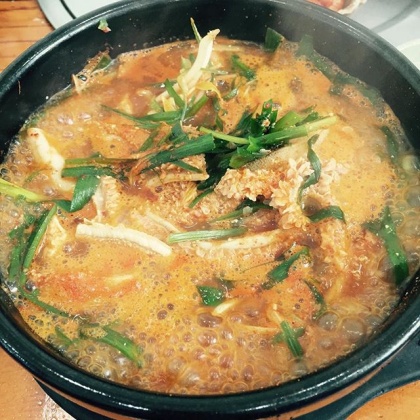 Q.내장탕의 특징적인 맛과 식감은 어떤가요?A.보글보글 끓는 내장탕에는 내장이 한껏 들어가 곱이 그득그득하고, 곱창은 곱이 많으며 양은 보들보들하면서 쫀들한 식감으로 묘사되어 있다.