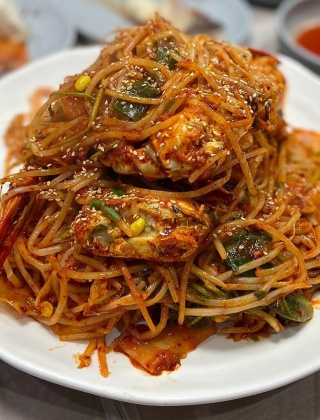 ‘장원산꽃게’는 살아있는 꽃게로 만드는 요리를 포함해 아귀찜, 해물탕 등 여러 해산물 요리를 만나볼 수 있습니다. 대표 메뉴는 꽃게와 콩나물, 미나리를 매콤한 양념으로 볶아 낸 ‘산꽃게 양념찜’. 씹을수록 단맛이 퍼져 나오는 꽃게살과 칼칼한 양념의 조화가 매력적입니다. 콩나물과 미나리는 아삭한 식감과 향긋함을 더하며 맛을 한층 살려줍니다.
