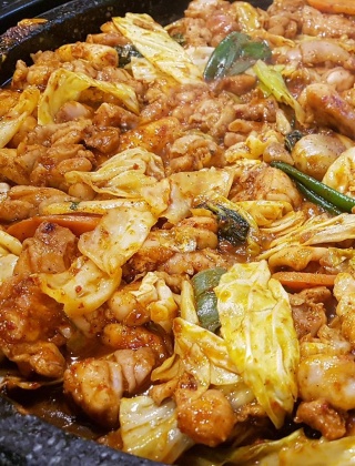 Q. 이곳에서 꼭 먹어봐야 할 메뉴는 무엇인가요?A.철판 닭갈비가 메인 메뉴로, 고구마와 양배추, 떡사리가 들어가 매콤하면서도 달짝지근한 양념과 불맛이 조화를 이루며 쫄깃하고 부드러운 식감을 느낄 수 있다. 닭갈비를 먹은 뒤 직원이 직접 볶아주는 날치알 볶음밥까지 즐기면 한 끼 구성이 잘 마무리된다.