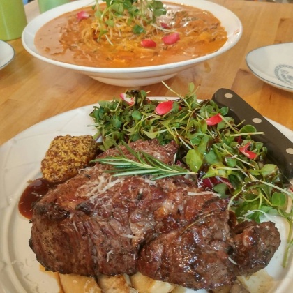 Q.어떤 메뉴 구성이 제공되나요?A.스테이크, 파스타, 리조또, 피자 등 다양한 메뉴가 있으며, 세트메뉴로 스테이크에 파스타나 리조또를 함께 선택할 수 있고 식전에는 스프와 빵, 기본샐러드가 제공됩니다.