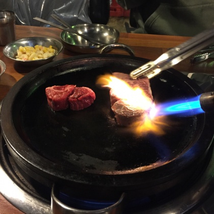 Q. 둥이상회에서 어떤 방식으로 고기를 구워 주나요?A.돌판을 달군 뒤 직원이 토치를 사용해 고기를 앞뒤로 구워 겉은 바삭 속은 촉촉한 겉바 속촉 식감과 육즙가득한 상태로 제공하며, 마지막에는 불쇼까지 더해 보는 재미도 있습니다.