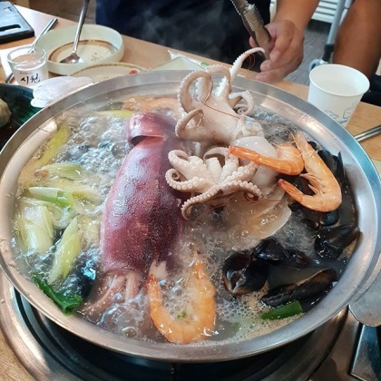 Q.이곳 해물칼국수는 어떤 점이 인상적인가요?A.오징어, 새우, 가리비, 홍합, 바지락, 미더덕이 풍성하게 들어가 끓일수록 국물이 진해지고 깔끔한 맛이 나는 점이 인상적으로 언급된다.