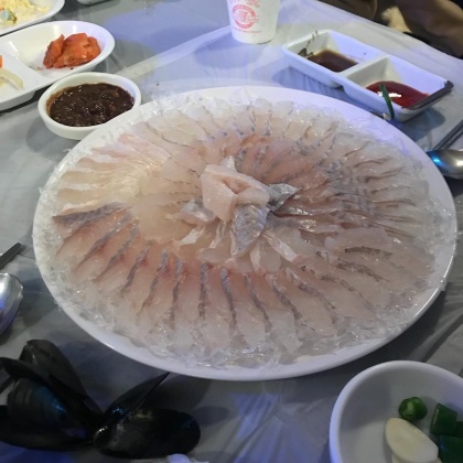 풍성한 밑반찬과 신선한 회
