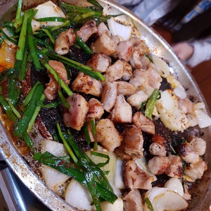 쫄깃한 곱창을 돌판에 구워 담백하고 부드럽다.