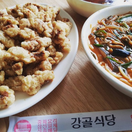 Q.강골식당에서 특히 많이 먹는 메뉴는 무엇인가요?A.매장에 들어서면 손님들이 대부분 간짜장을 주문하고 있어 간짜장이 대표 메뉴로 보이며, 곱빼기 선택도 가능하다.