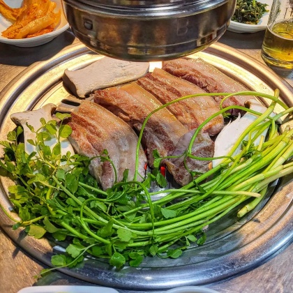 산청에서 직거래로 받은 흑돼지를 판매하는 곳입니다. 다른 부메뉴들도 시골에서 받아와 직접 제조를 하고 있어 저렴한 가겨에 맛있는 음식을 맛볼 수 있는 곳입니다. 육즙 가득한 삼겹살과 청국장, 두루치기의 인기가 좋습니다. 정갈한 밑반찬부터 맛깔나게 제공되는데 테이블은 4~5개가 전부라 웨이팅은 각오해야하는 곳입니다.