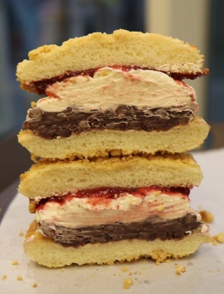 ‘이몸이만든빵’은 합정역 인근 아파트 상가 지하 1층에 위치하고 있는 자그마한 빵집입니다. 대표 메뉴는 한번에 먹기에도 부담 없는 크기를 자랑하는 ‘한입 맘모스’. 크럼블이 가득한 소보로 빵 사이에 직접 만든 팥앙금과 라즈베리 잼, 연유 크림을 푸짐하게 채워냈습니다. 적당한 단맛을 내는 팥 앙금과 부드럽게 퍼지는 연유 크림에 상큼한 라즈베리 잼이 자칫 느끼할 수 있는 맛을 잡아주며 훌륭한 밸런스를 이룹니다. 맘모스 빵은 연유 크림과 라즈베리 잼 두 가지로만 속을 채운 ‘팥 빠진 맘모스’ 버전도 준비되어 있으니 참고 바랍니다.