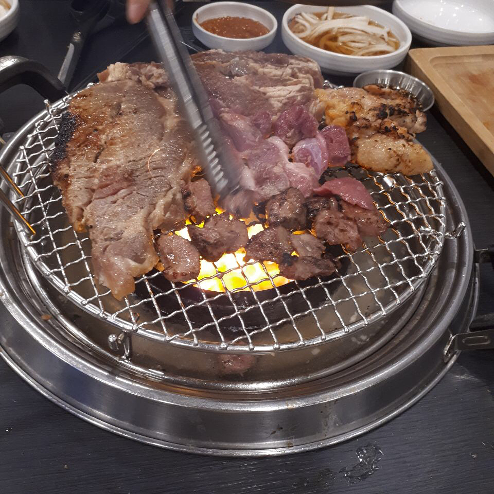 돼지고기 한돈뒷고기 숯불닭갈비 샐러드바를 저렴한 가격에 맛볼수있는 무한리필가게이다. 숯불에 구워먹는 무한리필가게로 다양한 고기와 샐러드를 맛볼수있다. 음료무제한, 주류무제한이 따로있는 곳이다.