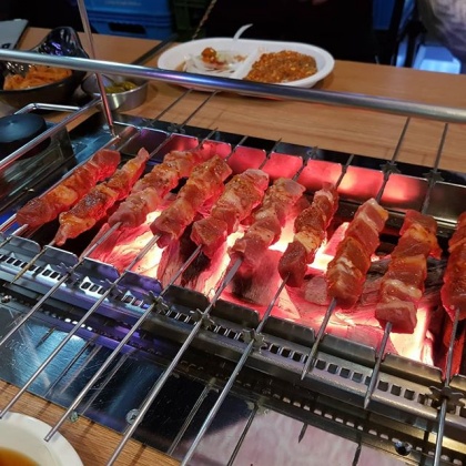 Q.이곳 양꼬치는 어떤 방식으로 구워지고 맛은 어떤 편인가요?A.양꼬치는 숯불 위에서 앞뒤로 자동으로 돌아가며 구워져 양기름이 흐르고 육즙이 퍼지는 식감으로, 쯔란과 시즈닝을 듬뿍 찍어 먹는 방식이 특징입니다.