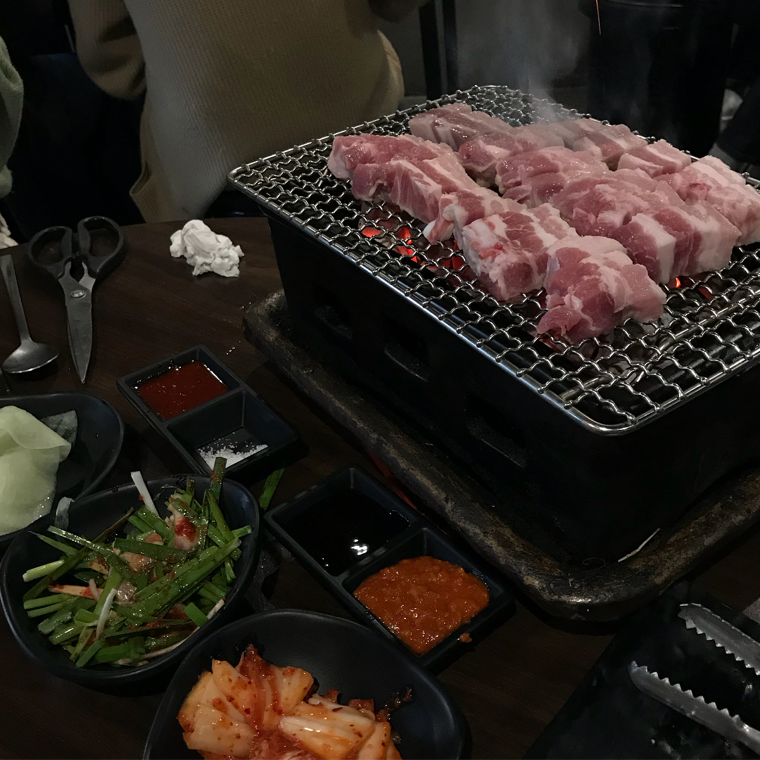 연탄불에 구워먹는 삼겹살 구이 전문점