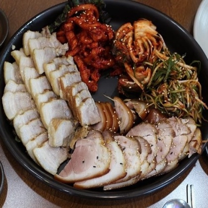 Q.보드레보쌈의 대표적인 점심 메뉴 구성은 어떻게 되나요?A.점심에는 보쌈정식과 쟁반국수를 함께 즐기는 점심특선이 있으며, 보쌈 고기와 다양한 쌈 채소, 반찬, 국까지 푸짐하게 나오는 구성이 특징입니다.