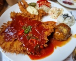 매운을지정식을 먹었어요. 혼밥하기에도 너무 좋았고.. 메뉴 구성도 괜찮았어요. 세트메뉴도 다양하고.. 돈가스뿐 아니라 사이드로 즐길 수 있는 메뉴들이 있었어요 저는 이날 혼자 방문해서.. 정식 메뉴 먹었는데 정식 메뉴 구성도 푸짐했어요. 돈가스+함박+새우튀김.. 그리고 스프나 모닝빵은 다 무료로 제공해주시는거라.. 정말 푸짐하게 든든히 먹었어요 매운소스도 딱!! 달콤매콤해서 맛있었네요 무엇보다 깔끔하고 분위기 넘 좋아요