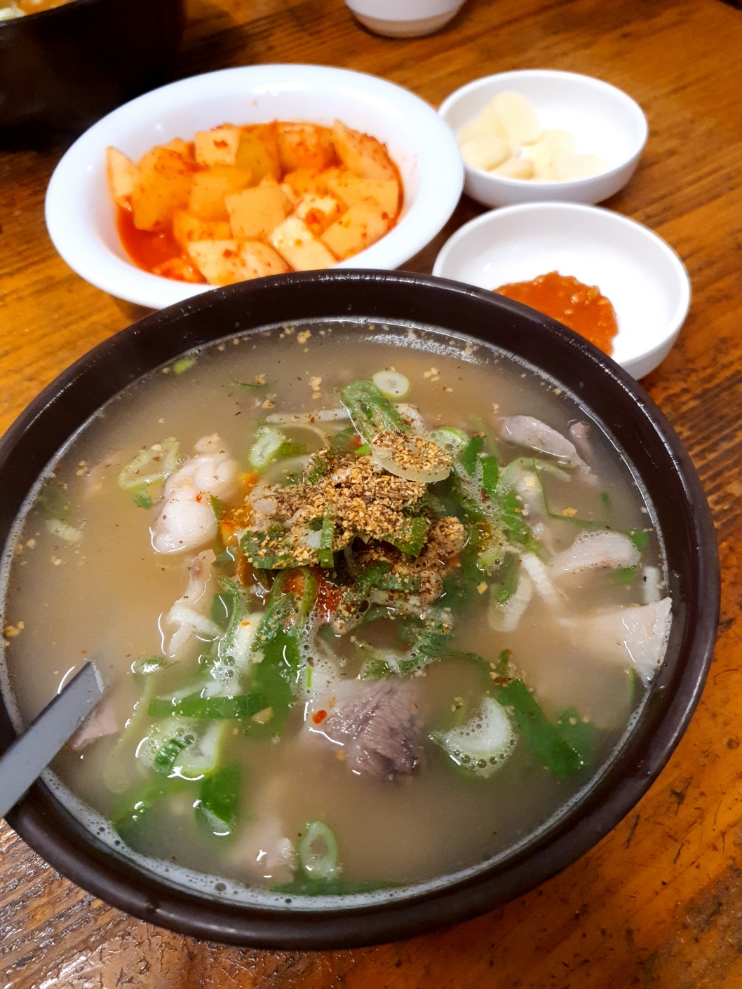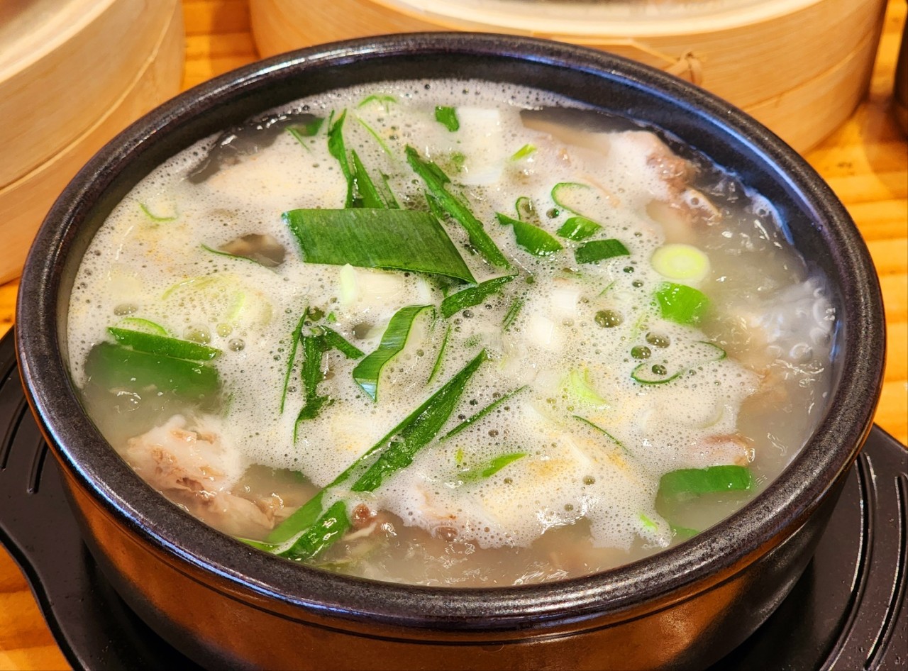 A. 사골 베이스에 들깨가 더해져 고소하고 진한 맛. 속을 빠르게 풀어주는 스타일이다.