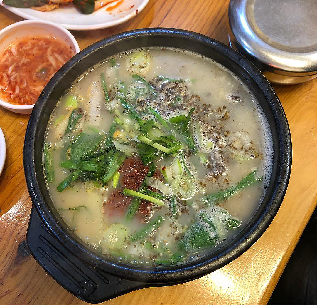 대표 메뉴는 ‘찹쌀순대정식’, ‘순대국밥’, ‘특 내장국밥’이에요. 순대와 수육이 함께 나오는 찹쌀순대정식은 푸짐한 구성으로 특히 인기예요. 순대국은 우유처럼 뽀얗게 우러난 국물이 뚝배기 속에서 보글보글 끓으며 등장해요. 진한 고깃국물이 목을 타고 내려가며 속을 든든하게 채워주죠. 따끈한 육수가 찹쌀순대 사이사이에 스며들어 탱글한 식감과 고소한 맛을 한층 살려줘요.