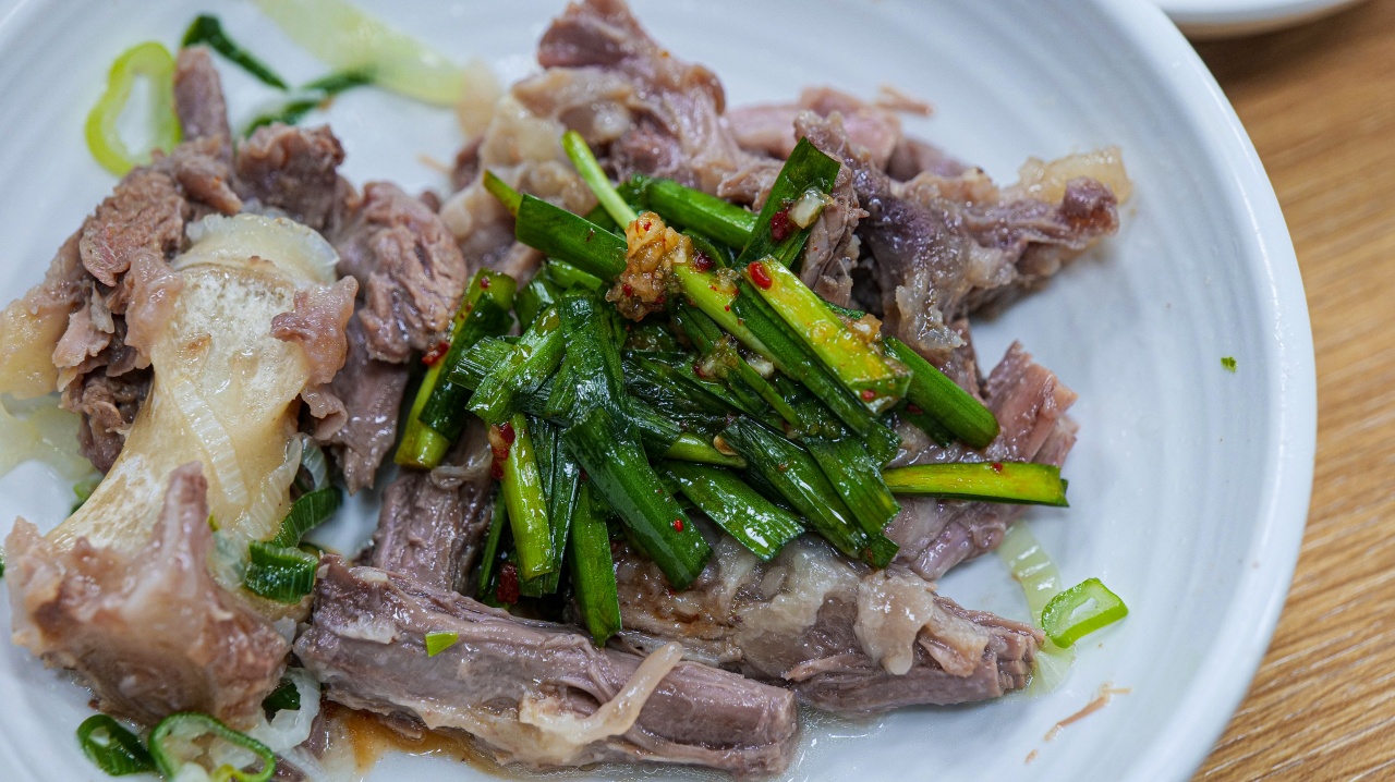 뚝배기에 담겨 나오는 꼬리곰탕을 받아들면 가장 먼저 그 푸짐함에 눈이 간다. 손님들은 머뭇거릴 여유 없이 토막 한 덩이를 손으로 들고 뜯는다. 토막마다 결결이 붙은 살코기가 흐물거릴 만큼 연하게 익어 있지만 씹으면 쫄깃한 탄력도 동시에 느껴진다. 젓가락이나 포크를 대기만 해도 슬슬 발라지는 꼬리살에서는 전혀 비린내가 나지 않고, 입안에 고소한 풍미만 남는다. 맑은 국물은 투명해 보여도 오랜 시간 우러나 농도가 진하다. 이 집만의 별미인 부추+다진 마늘 양념장도 함께 나온다. 뼈에서 발라낸 고기를 이 양념장에 살짝 찍어 먹으면 향긋한 부추향과 알싸한 마늘 향이 어우러져 담백한 고기가 한층 맛깔스럽게 느껴진다.