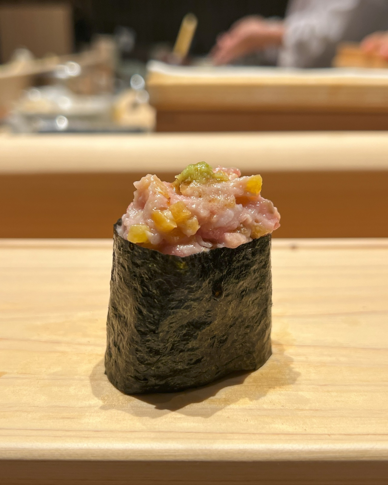 김수사는 특히 히노끼 기물에 스시가 제공되어 가격대비 합리적.