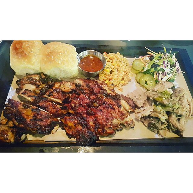A. 플래터에 고기 2종(예: 풀드포크·립)과 사이드 3가지를 고르는 구성이 활용도 높습니다. 번이 함께 제공되어 샌드처럼 즐기기 좋습니다.