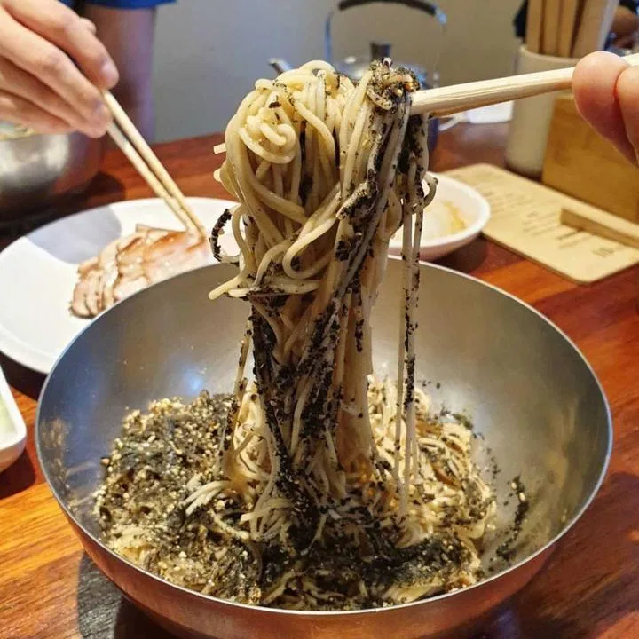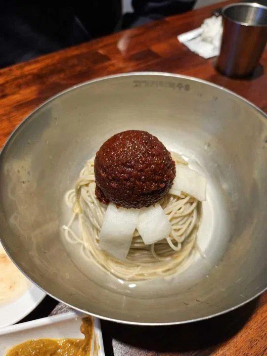 투박한 비주얼에 놀라기도 잠시, 직원의 안내대로 면을 함부로 마구 휘젓지 않고 살살 들어 올려 먹으면 메밀면 자체의 구수함과 들기름의 고소한 풍미가 조화롭게 어우러진다. 자칫 기름 향이 강해 느끼할 법도 한데, 전혀 그렇지 않고 놀랍도록 담백하다. 간장 양념 역시 과하지 않아 짜지 않고 메밀과 들기름의 맛을 은은히 받쳐 주는데, 이 삼박자의 밸런스가 딱 맞아 떨어지는 한 그릇이라는 찬사가 절로 나온다.